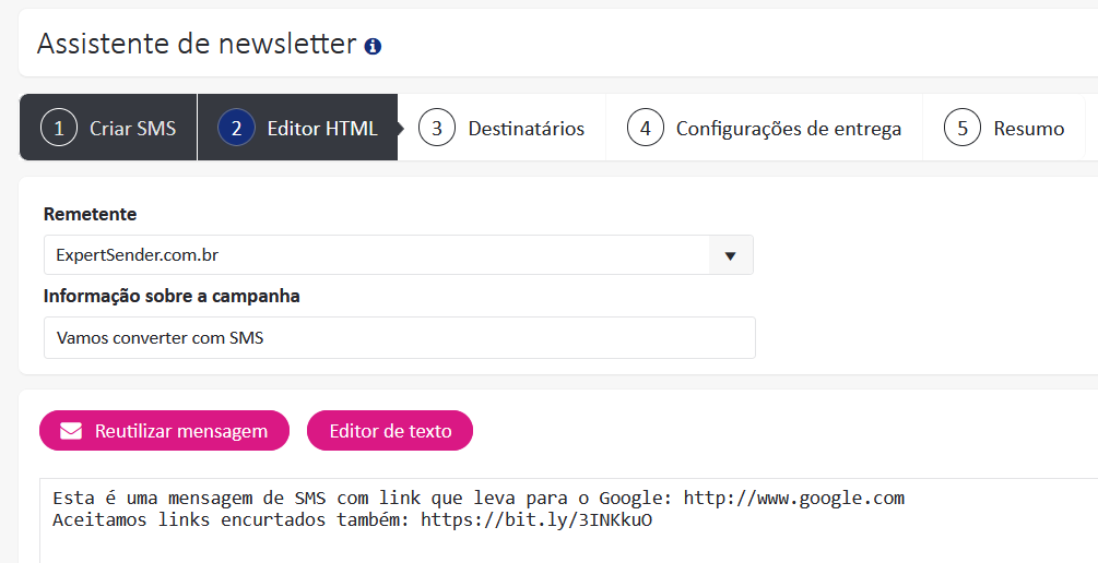 Além de campanhas de Newsletters de E-mail, a ExpertSender também permite a criação de disparos de Newsletters direcionados a números de telefone, o famoso SMS.